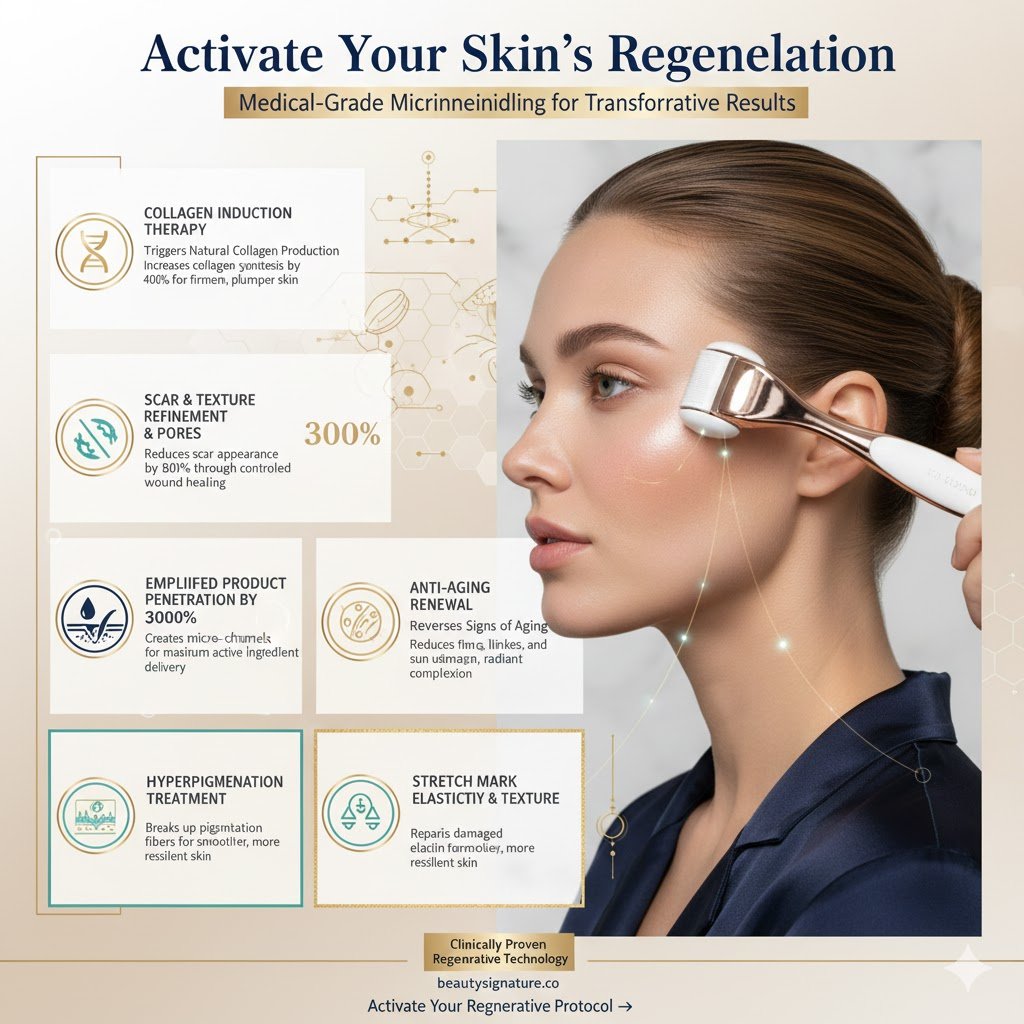 Targets stubborn acne scars, discoloration, fine lines, enlarged pores, and uneven texture for a visibly smoother, more refined complexion. Notice improved skin texture within 4–6 weeks, with deeper scar and pigment refinement evolving over 3–6 months of consistent use.