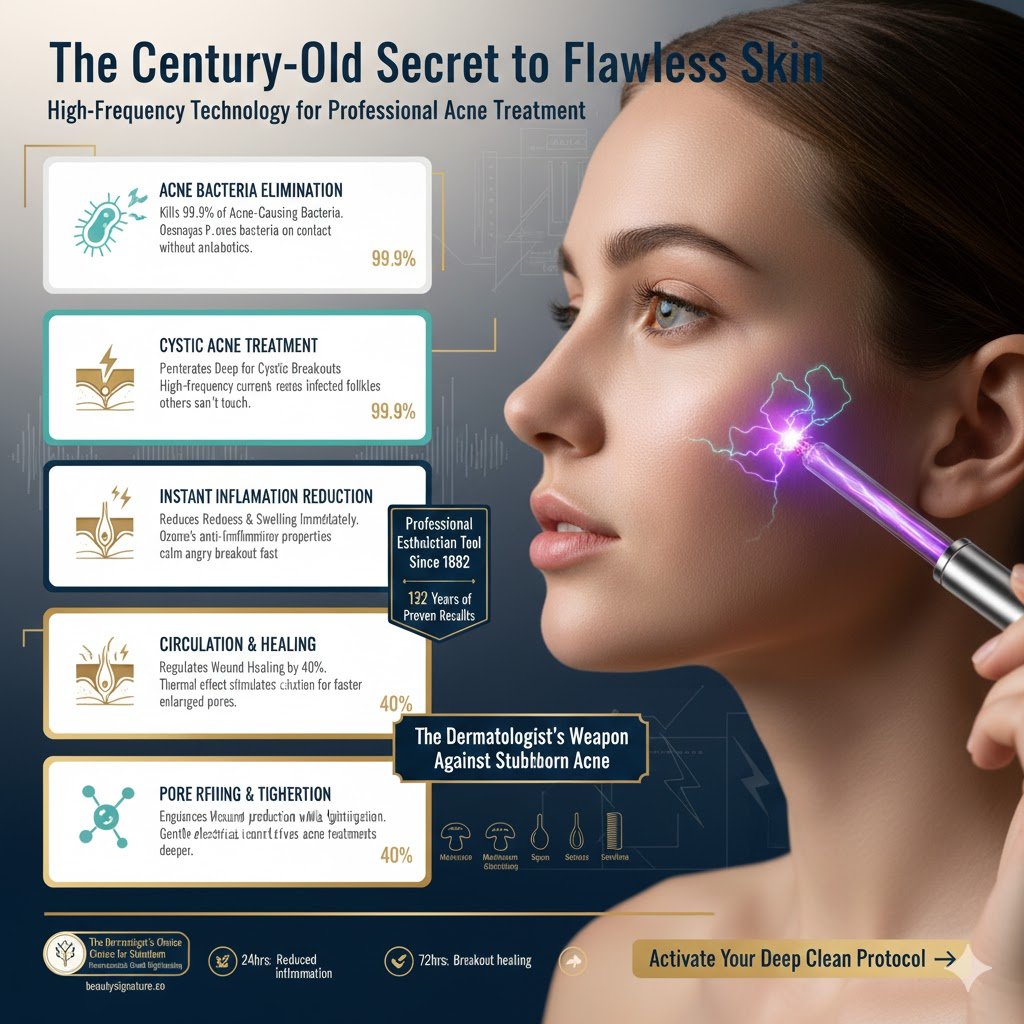 High-frequency current produces ozone (O3) that kills 99.9% of P. acnes bacteria on contact. The electrical stimulation also increases cellular metabolism by 400%, promoting healing and reducing inflammation. Dermatology studies show a 65% reduction in active acne lesions after 4 weeks of consistent use.