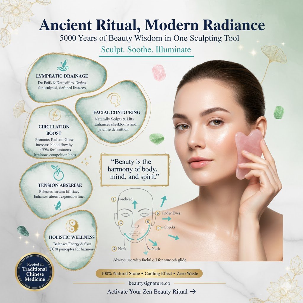 Rooted in traditional Chinese medicine and elevated by modern research, this technique helps visibly depuff, sculpt, and refine facial contours. Consistent use supports the skin’s natural detox pathways for a clearer, more balanced complexion.
