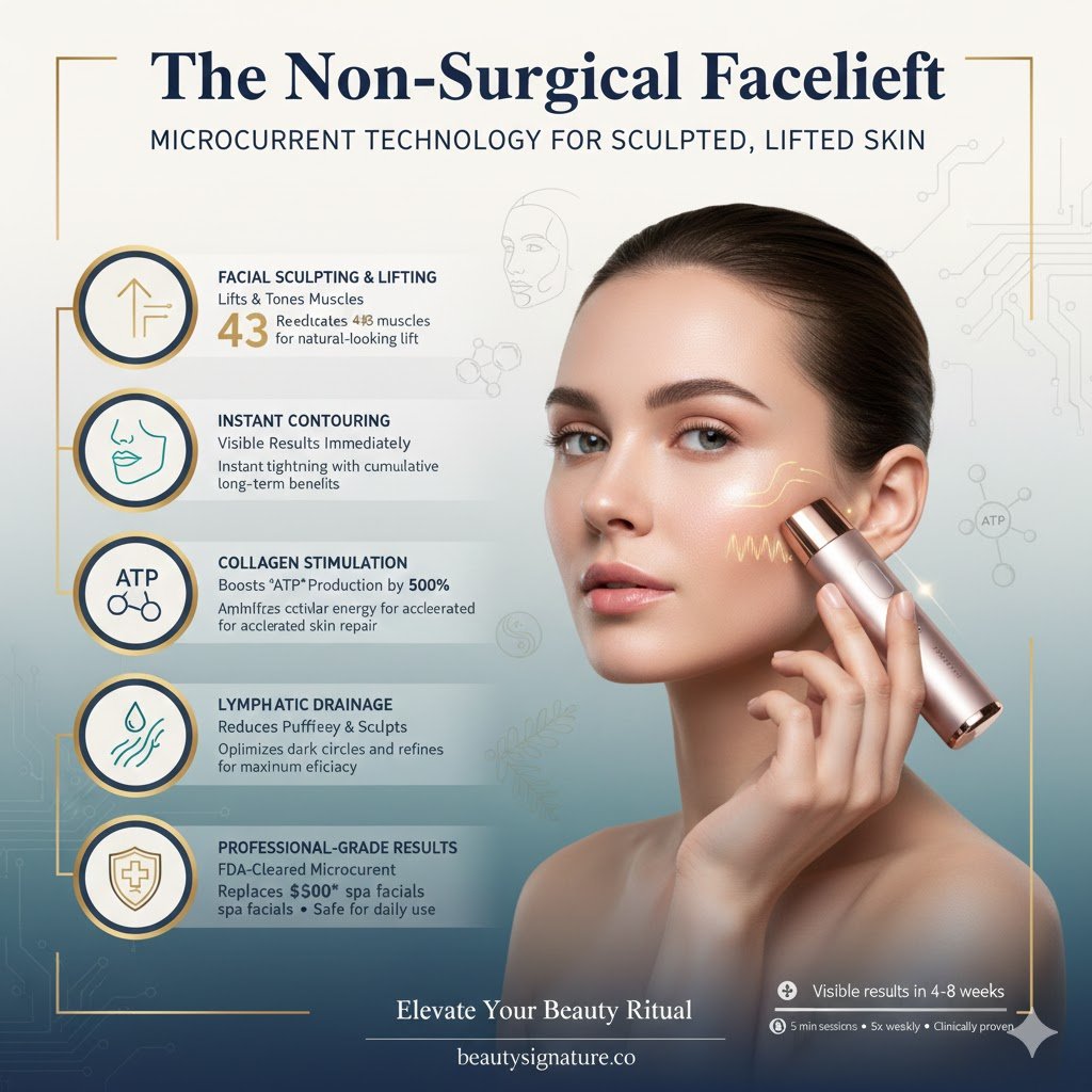 Powered by advanced microcurrent technology, this treatment delivers gentle, low-level electrical currents that replicate the body’s natural bioelectrical field, amplifying cellular energy (ATP) by up to 500%. Clinical studies reveal a 32% improvement in facial contour and a 26% boost in circulation after just 60 days, for a firmer, more sculpted, and radiant complexion.